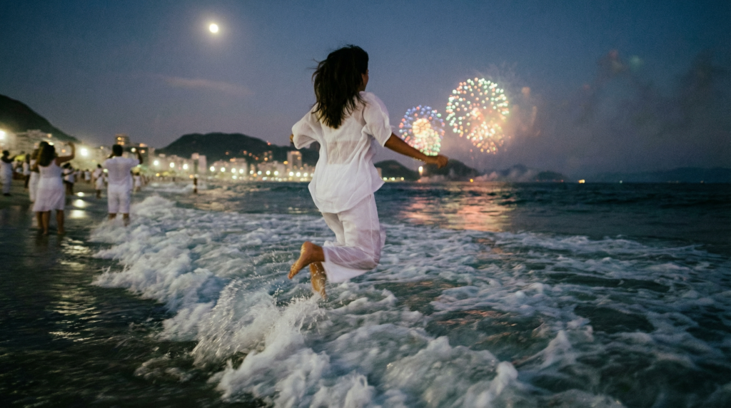 - Faça suas Preces: À meia-noite, acenda a vela, ore com fé e converse com a Mãe d’Água. Apresente seus agradecimentos por 2025 e seus pedidos para 2026.